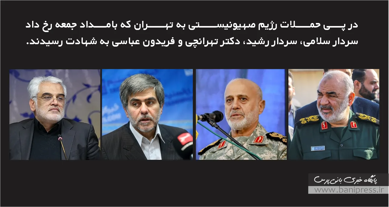 در پی حملات رژیم صهیونیستی به تهران که بامداد جمعه رخ داد سردار سلامی، سردار رشید، دکتر تهرانچی و فریدون عباسی به شهادت رسیدند.